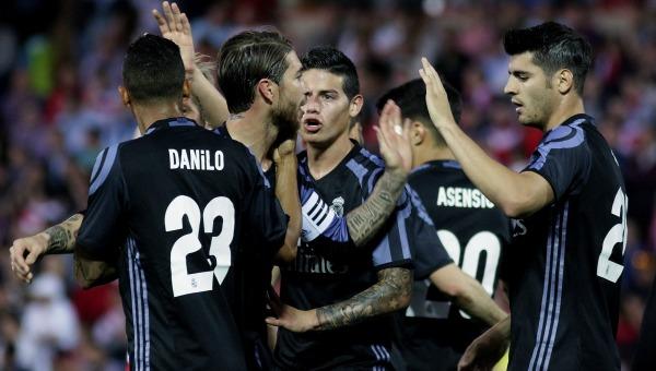 El Real Madrid goleó al Granada en un encuentro que decidió en apenas media hora y sumó tres importantes puntos a tres partidos para el final de la Liga. Los blancos sólo necesitaron tres minutos para demostrar que no iban a ceder en el pulso por la Liga. Morata, en la frontal del área, abrió el balón hacia Lucas Vázquez, que asistió a James para que rematase a placer sobre la línea de gol.